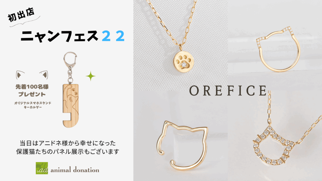 1019日(日)に浅草にある東京都立産業貿易センター台東館で行われた「ニャンフェス22」にアニドネ+イイコトに参加されている株式会社ジュエリー工房Orefice(オレフィーチェ)様が出店されました。