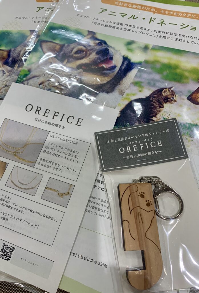 また、猫モチーフジュエリー売上の5%をアニドネへの寄付としてくださいました。