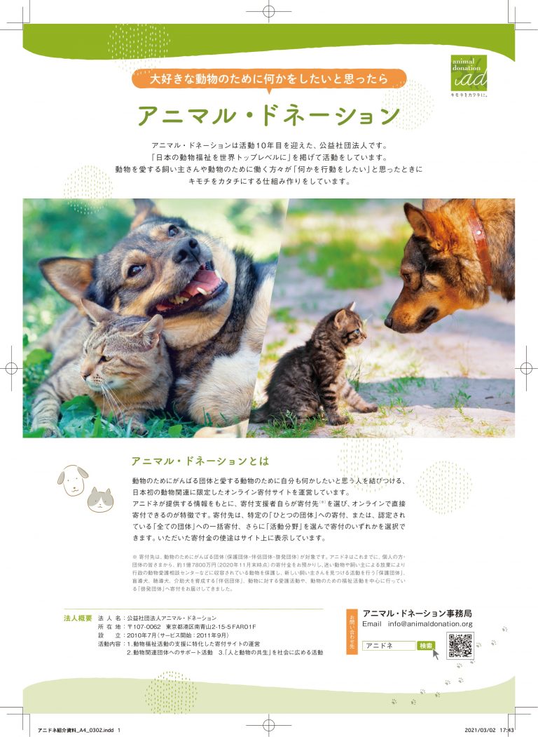 ※掲載の文章・写真はアニマル・ドネーションが許可を得て掲載しております。無断転載はお控えください。