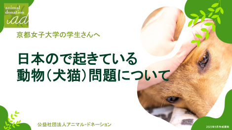 京都女子大学にて、学生の皆さまを対象に「日本で起きている動物(犬猫)問題について」 をテーマに講義を行いました。