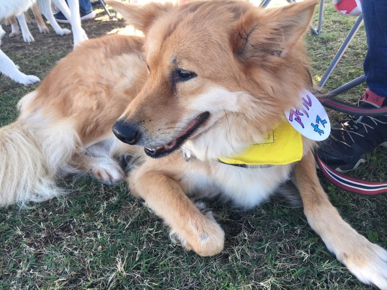 芝生の会場には受付とフリーマーケット、保護犬の待つテントが複数ありました。
