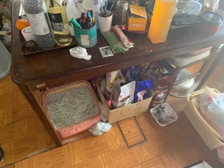 「こちらは2頭目にご紹介する村正くんが保護された現場の風景です。村正くんはメルちゃんと別の場所からの保護でしたが、高齢者の多頭飼育崩壊、10歳以上のシニアでFIVキャリアという点はメルちゃんと共通しています」