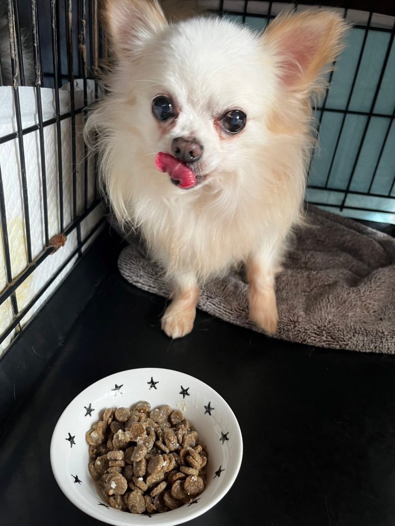 「超高齢の犬や専用の病院食が必要な犬もいるので、それぞれの体調にあわせた食事を用意するのに手間はかかりますが、色々工夫して作っています。例えば、ふかしたサツマイモを加えたり、お米やお肉と一緒に煮込んだり。ふやかしたドッグフードをミキサーにかけ、食べやすい流動食にしたりすることも。その甲斐あって、みんないつもモリモリと食べてくれます。
