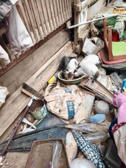 「逝去された故人は、体調不良を抱えながらも数年前より孤立した生活を送っていたようです。現場を視察した際、人間の食べ物は全く見当たらない状態でしたが猫缶・チュール・フードが辺り一面にありました。故人は、猫を大切にしかけがえのないものだったと痛感致しました。また故人が寝ていたと思われる寝床には、主人の帰りを待つかのように雌猫が身を隠していました。