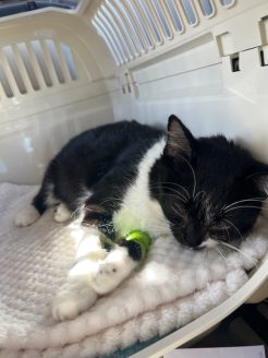沖縄より11頭の子を受け入れしました。沖縄の捨て猫の問題や殺処分の問題を数年前に知り、シェルターに余裕がある時は、沖縄のボランティアさんと連携を取り空輸で受け入れをしています。今現在は、初期医療も終わり猫カフェにて迎え主さんとのご縁を待っている状態です。