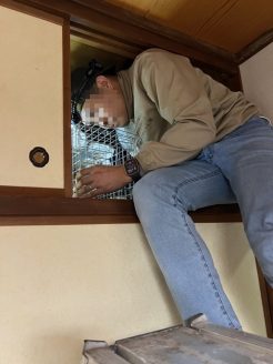 天井裏で出産したと思われる親子猫の保護依頼がありました。入ることができない天井裏に捕獲器を設置し、1頭ずつ1週間かけて保護。最後の1頭を保護できたときは心の底から安堵しました。保護できたのは母猫と子猫5頭。保護直後は人を怖がっていましたが、子猫3頭はすでに迎え主さんの元へ。母猫は今、猫カフェで人慣れ修行中です。