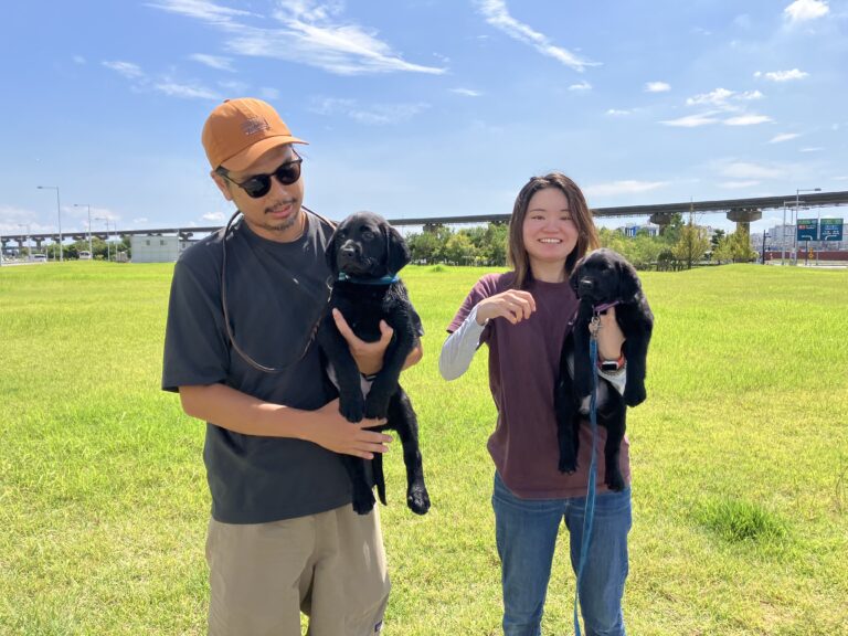 「エイミーとルカは、“働く犬”のブリーディングを専門的に行う サービス・ドッグス・オーストラリア出身です。羽田空港に迎えに行った日は、なんとか天気にも恵まれました。実はこの後が予報通りの大雨。輸入のたびに、フライトの無事を祈らずにいられません…」