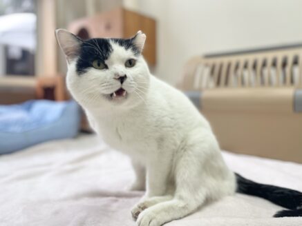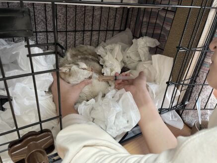 きのこちゃんは、保健所から引き取った当初は脱水がひどくガリガリでした。ぐったりとして、頭を上げることもできませんでした。補液や強制給餌など集中的な医療とケアで無事回復しました」