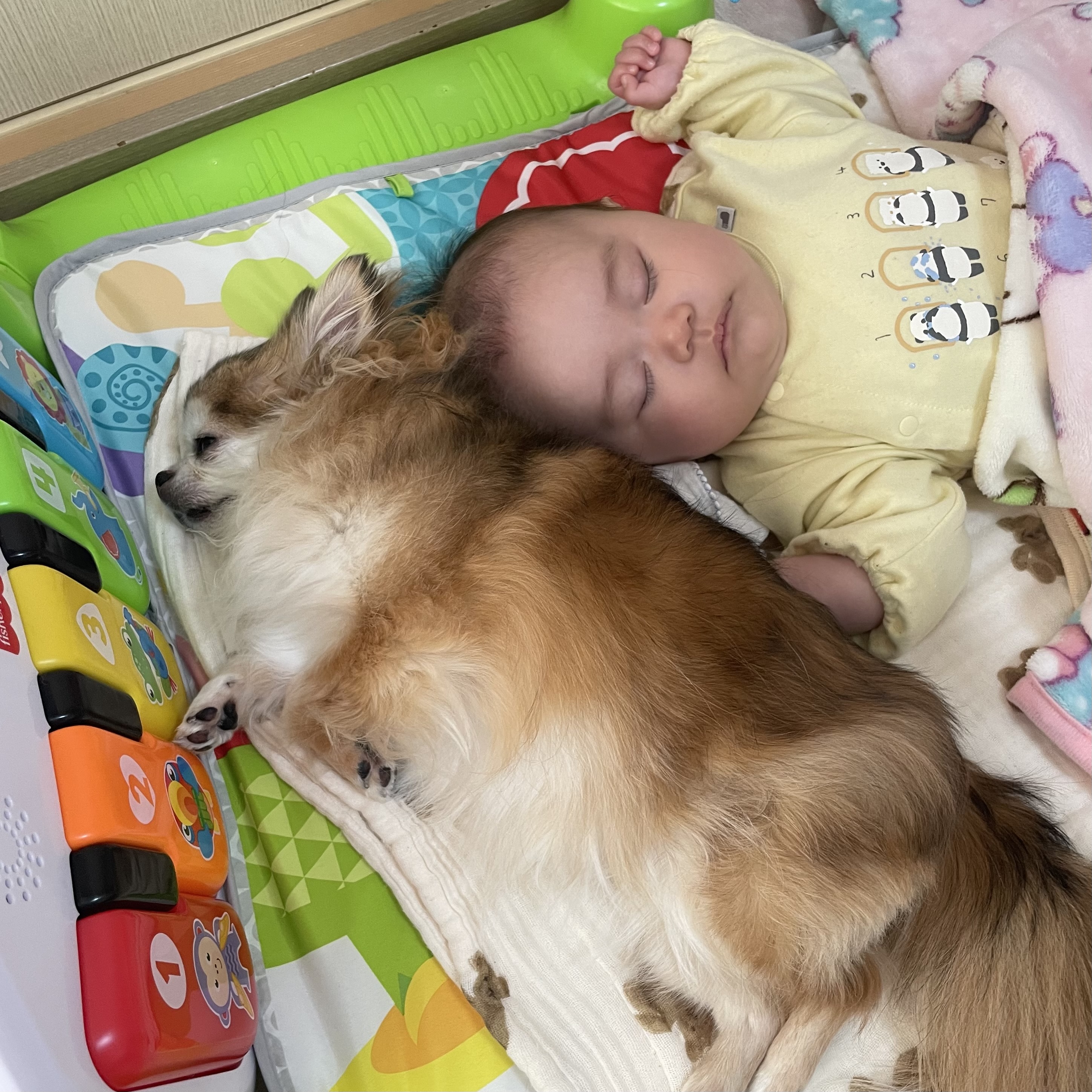 1歳の息子の相手を毎日してくれる猫6匹と犬1匹。今朝起きて第一声は「にゃんにゃん」、そのまま隣に寝ていた猫に抱きついていました。