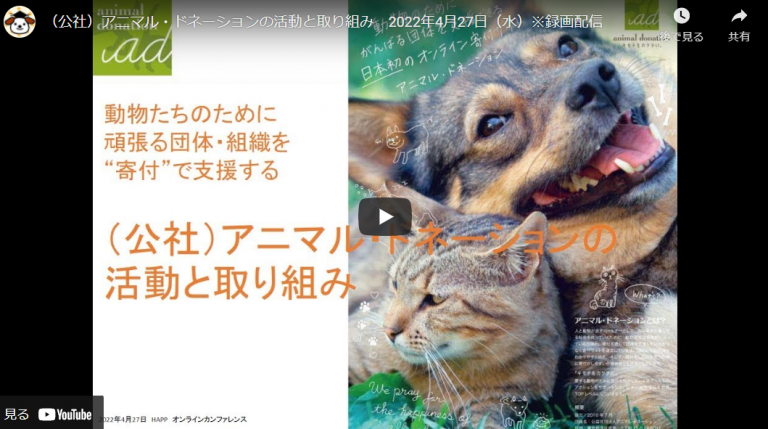 HAPPオンラインカンファレンス「動物たちのために頑張る団体・組織を“寄付”で支援する ― (公社) アニマル・ドネーション の 活動 と 取り組み」