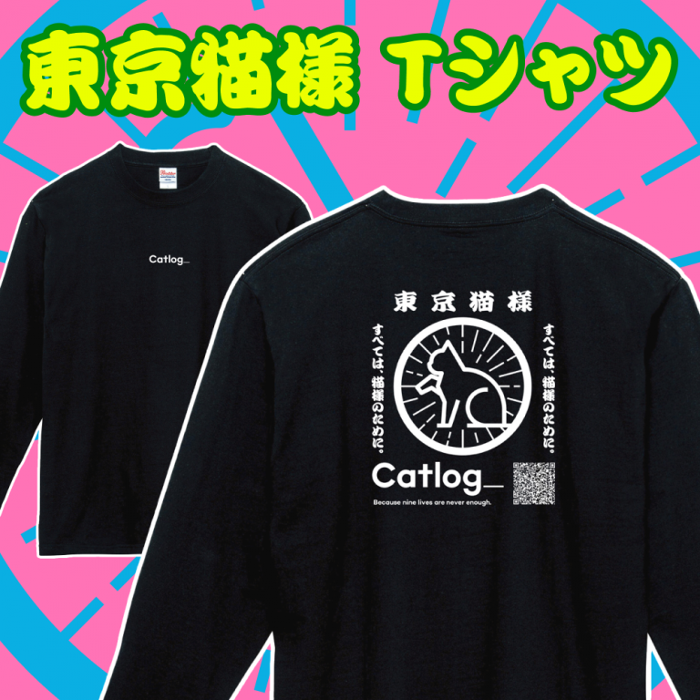 「東京猫様Tシャツ」は、ヘビーウエイト生地で仕上げた長袖Tシャツ。売上の一部が寄付となり、アニドネを通じて保護猫活動を行なっている認定団体に届けられます。