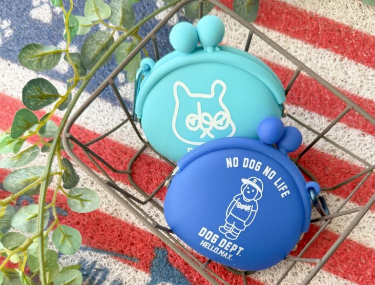 DOG DEPT様からシリコン素材のがまぐち口ポーチが新たに販売され、イラストはDOGDEPTのキャラクター マックス君、デプタ君の2種類あります。