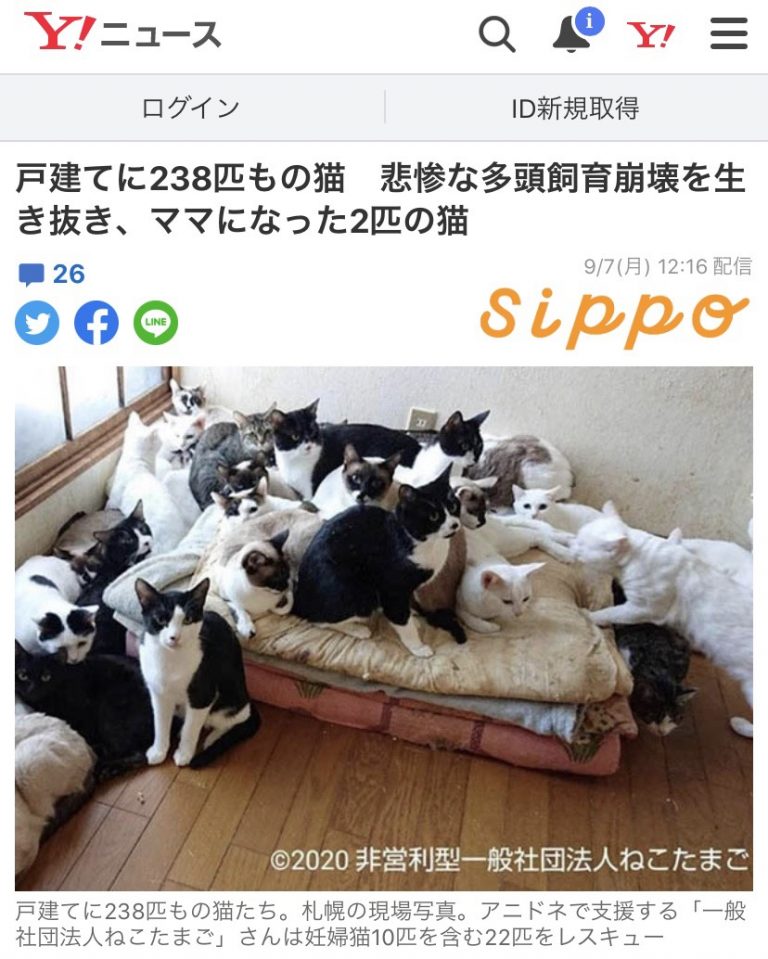 「戸建てに238匹もの猫 悲惨な多頭飼育崩壊を生き抜き、ママになった2匹の猫」