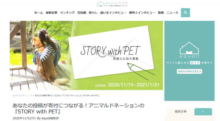 ペットの飼い主専門住まいメディアのequallLIFEに、