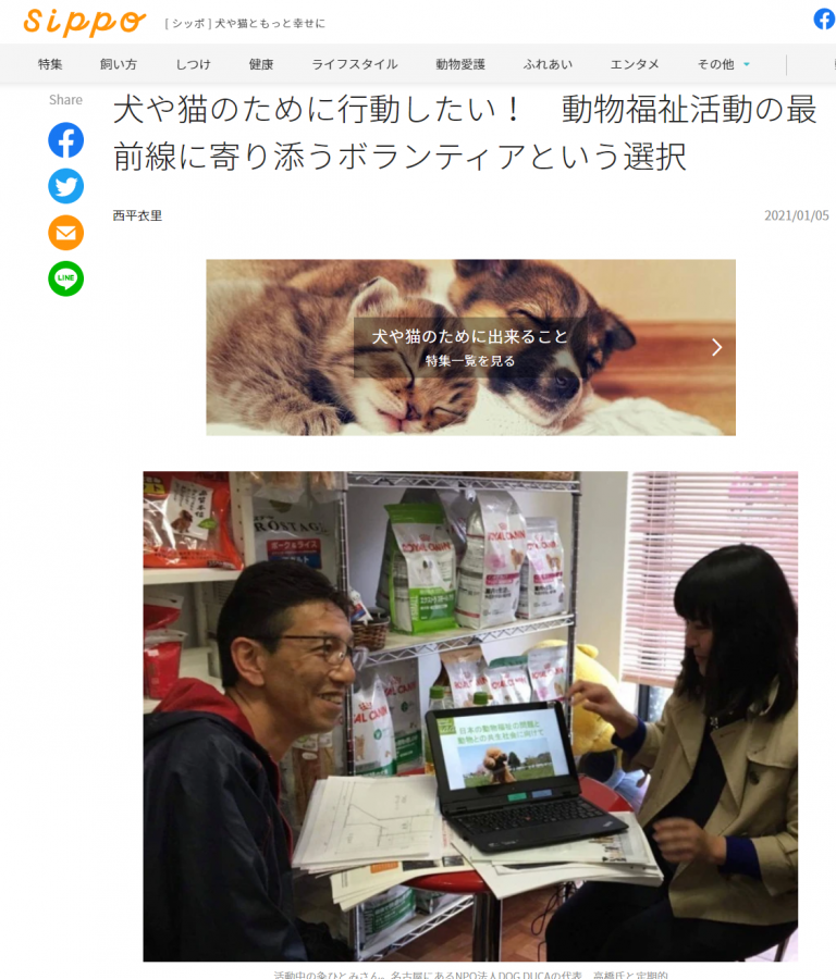 “犬や猫ともっと幸せに”をコンセプトにしたWEBメディア『sippo』(朝日新聞社運営)に、