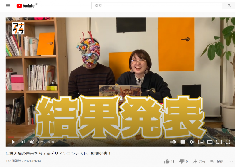 アナグラ608号室さんのYouTubeにて、保護犬猫の未来を考えるデザインコンテストの結果が発表されました。