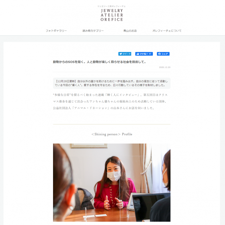 アニマル・ドネーション所属の山本和子のインタビュー記事が掲載されました。