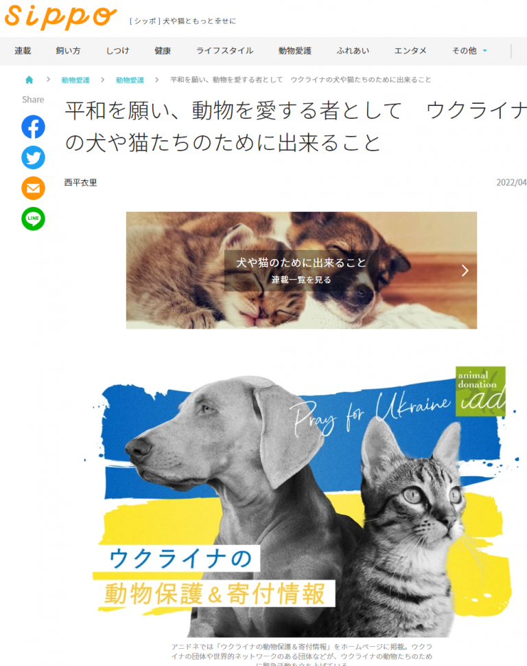 「平和を願い、動物を愛する者として ウクライナの犬や猫たちのために出来ること」