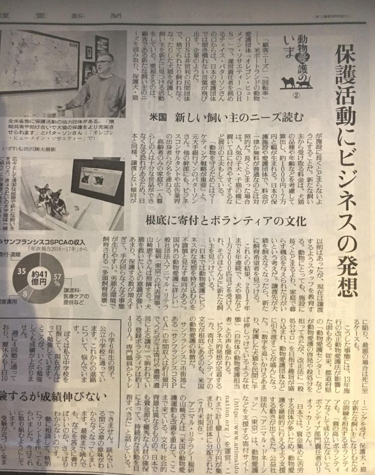 読売新聞全国版で「動物愛護の今」という連載がスタートし、2回目にアニドネが紹介されました。読売プレミアムでもご覧になれます。