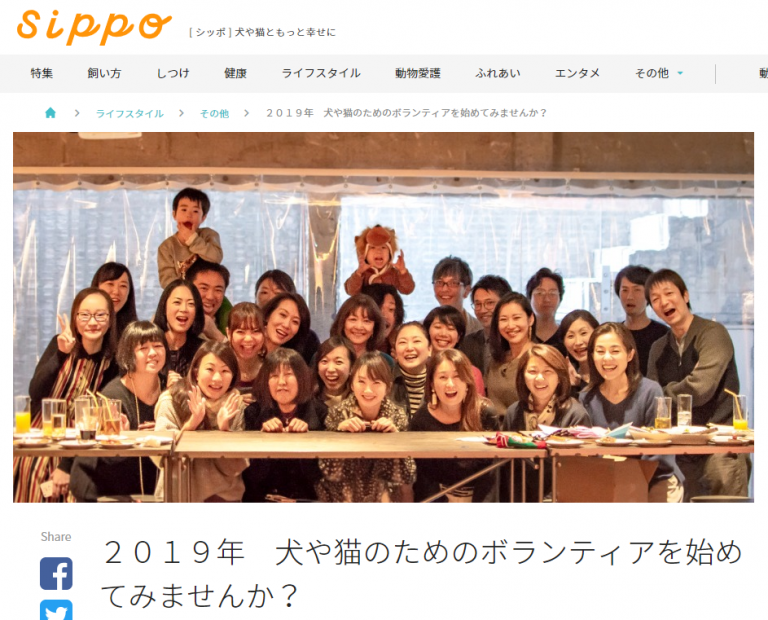 “犬や猫ともっと幸せに”をコンセプトにしたWEBメディア『sippo』(朝日新聞社運営)。代表理事の西平衣里の連載5号目は「2019年 犬や猫のためのボランティアを始めてみませんか?」をテーマにアニドネのボランティア クラブアニドネの紹介をしております。