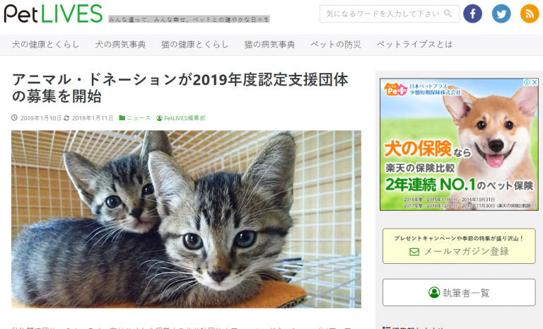 ペットとの健やかな日々を送るための情報を提供している Pet LIVES の記事に、アニドネの認定団体エントリーについての内容が紹介されました。