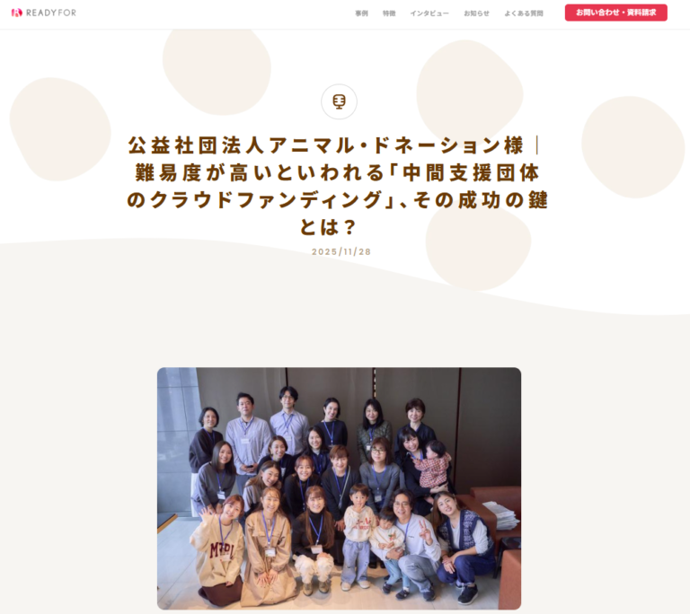 クラウドファウンディングサービスを展開するREADYFORのインタビュー記事にアニマル・ドネーションが掲載されました。