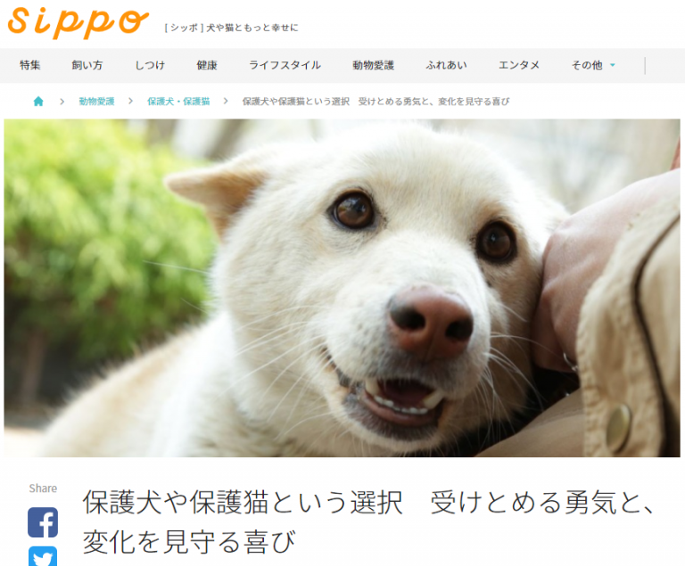 “犬や猫ともっと幸せに”をコンセプトにしたWEBメディア『sippo』(朝日新聞社運営)。アニドネ代表理事の西平衣里の連載は「保護犬や保護猫という選択 受けとめる勇気と、変化を見守る喜び」がテーマ。保護される前と保護された後の写真で見る犬たちの劇的な変化。